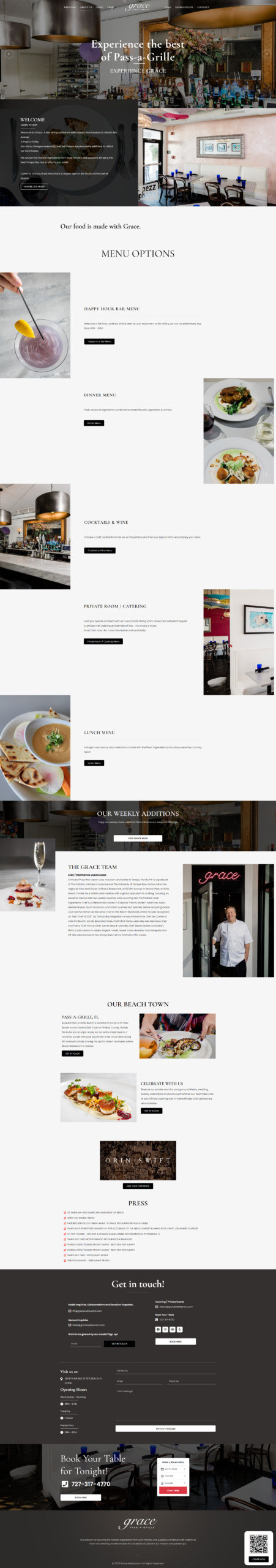 Grace Restaurant is a premier fine dining establishment located on historic 8th Avenue in Pass-a-Grille, Florida, offering a seasonal menu that celebrates local ingredients and culinary creativity. Under the guidance of Chef and Proprietor Jason Lutzk, a Culinary Institute of America graduate, Grace provides an elegant yet relaxed dining experience combining global cuisines—including French, Modern American, Asian, Mediterranean, South American, and Italian influences.
