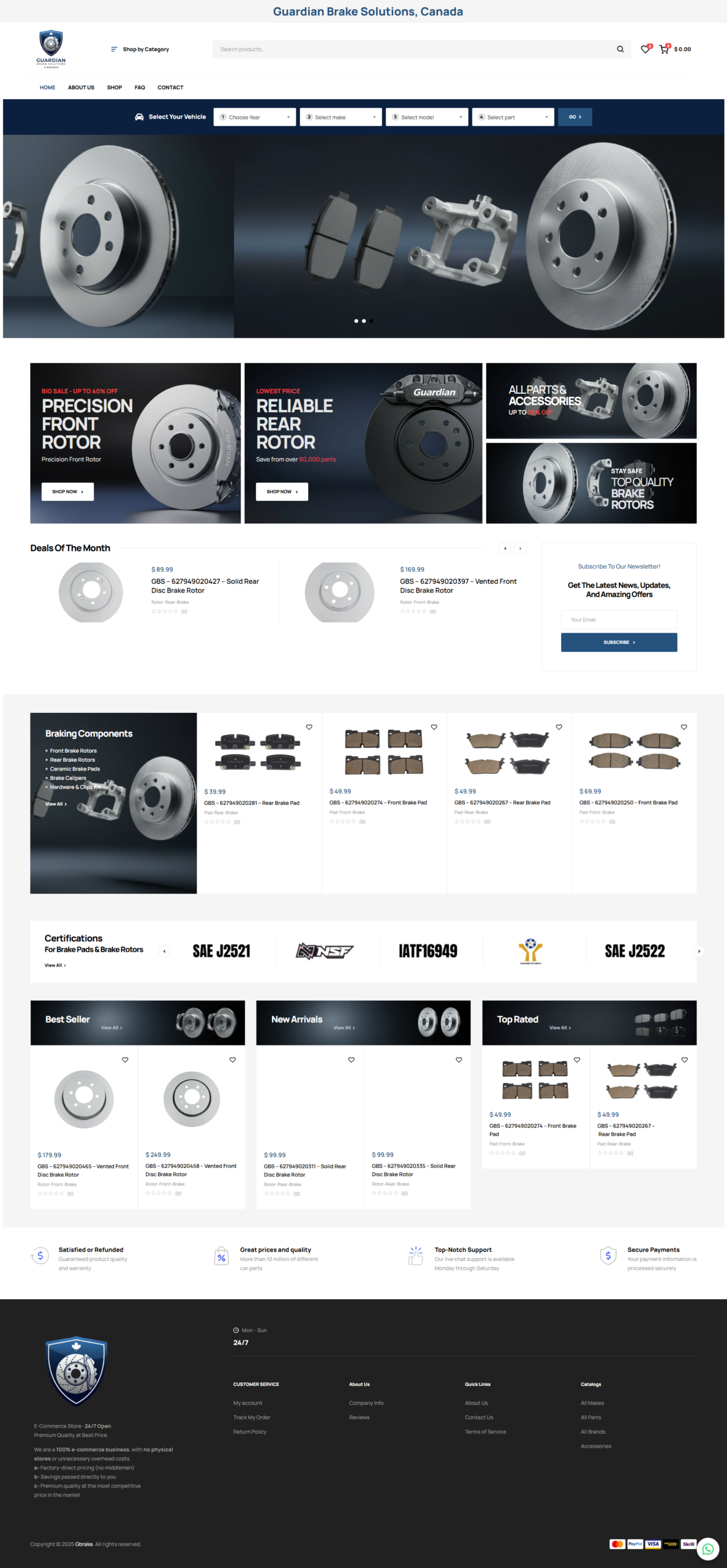Guardian Brake Solutions (GBS) is a leading Canadian e-commerce platform providing high-quality braking components and automotive parts directly to consumers at competitive, factory-direct prices. Specializing in front and rear brake rotors, ceramic brake pads, calipers, hardware kits, and accessories, GBS ensures every vehicle—from everyday cars to performance models—receives premium, reliable components for maximum safety and performance.